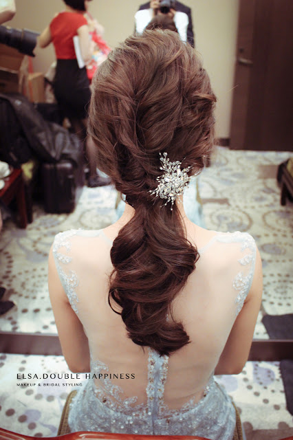 迎娶的乾淨造型,在側邊放上了金色系的復古髮飾,很高興她也喜歡這樣的處理方式~有自己的個性、不全然乖乖的優雅,就像她的人一樣^^